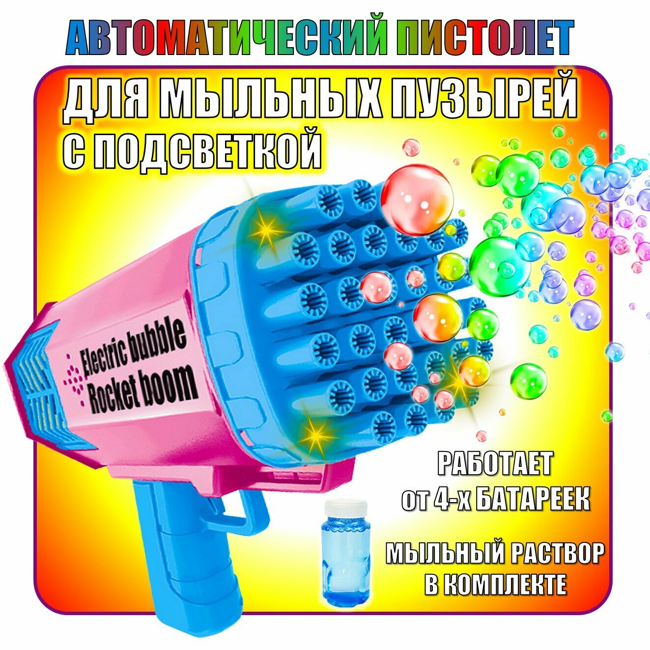Пистолет для мыльных пузырей, с подсветкой. Мыльные пузыри. Генератор мыльных пузырей
