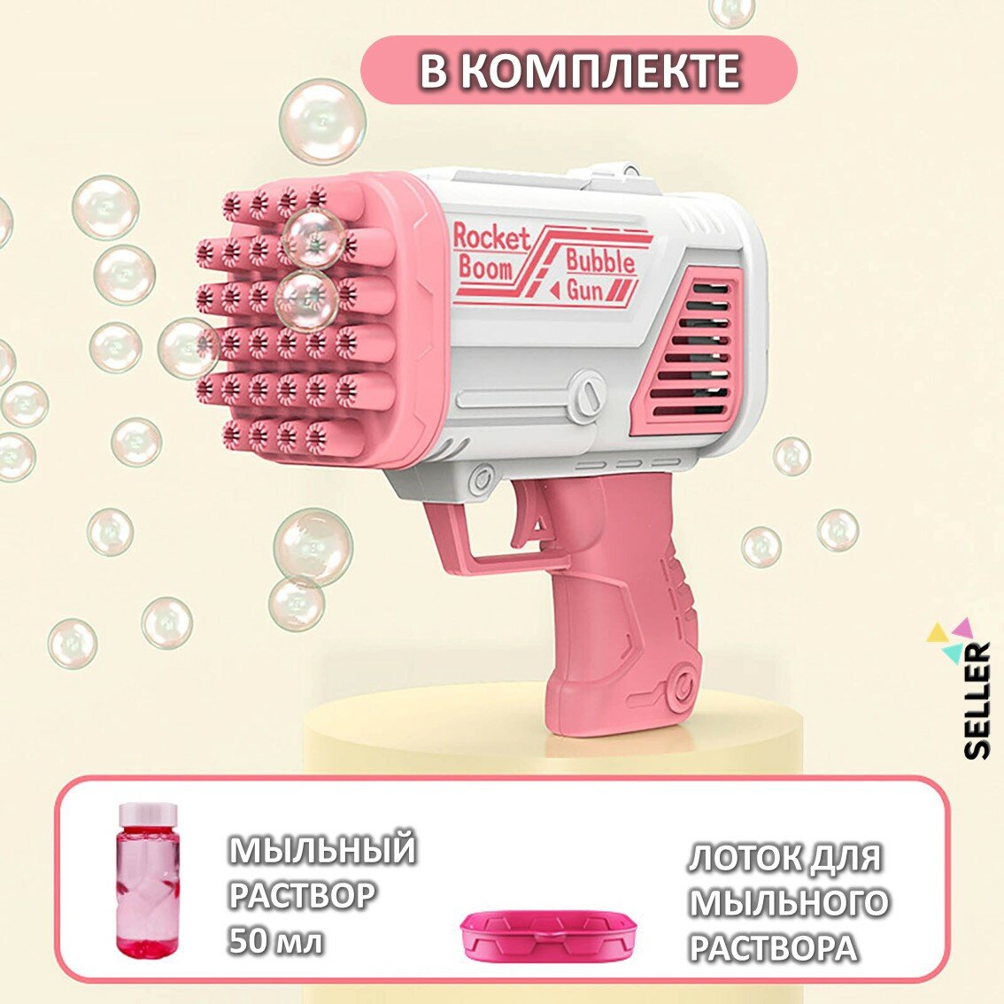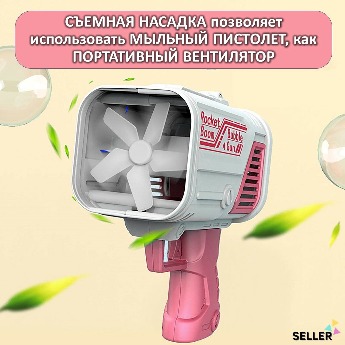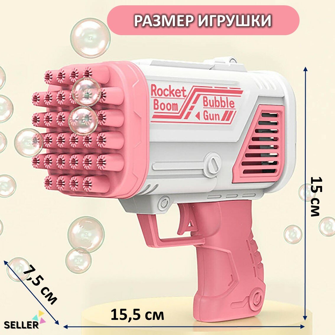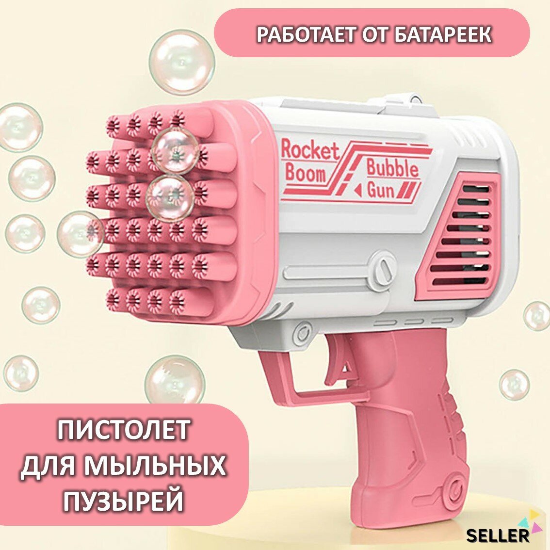 Пистолет для мыльных пузырей. Генератор мыльных пузырей. Мыльный пистолет / розовый