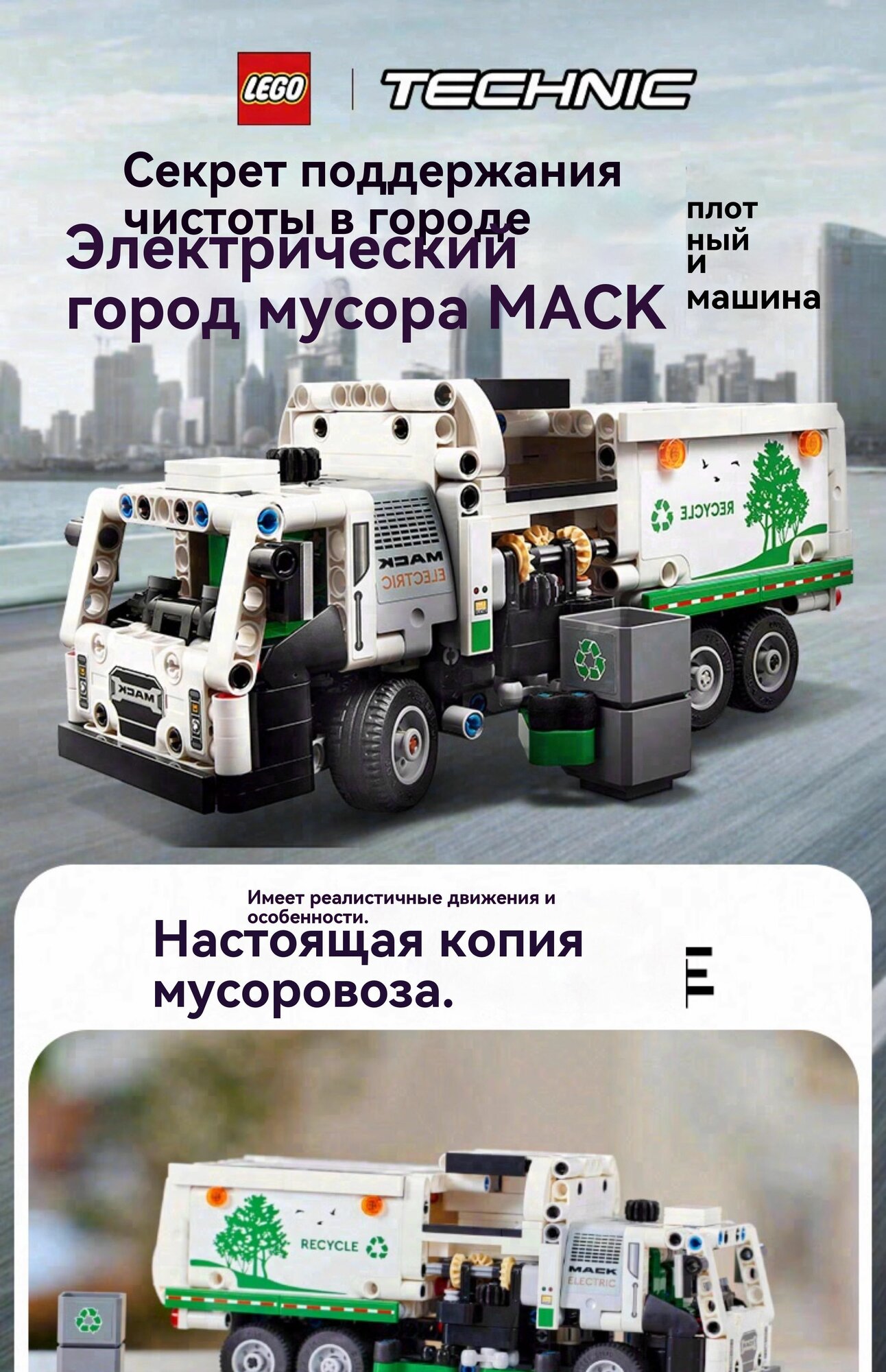 Конструктор LEGO Technic 42167 Электрический мусоровоз Mack LR, 503 дет. интересное: