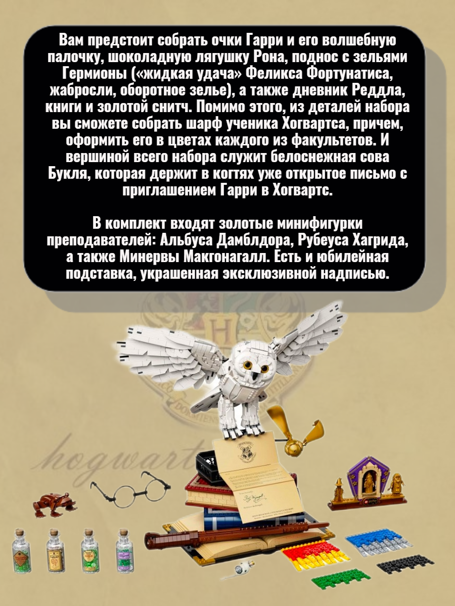 Купить Конструктор Гарри Поттер "Букля и символы Хогвартса" - 3010 деталей/ совместим с Lego/конструктор для взрослых