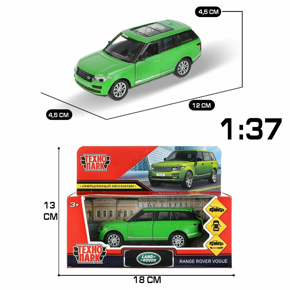 Модель Инерционная Технопарк Range Rover Vogue Soft (12см, металл, открываются двери, зеленый, в коробке) VOGUE-12FIL-GN, (Shantou City Daxiang Plastic Toy Products Co., Ltd)