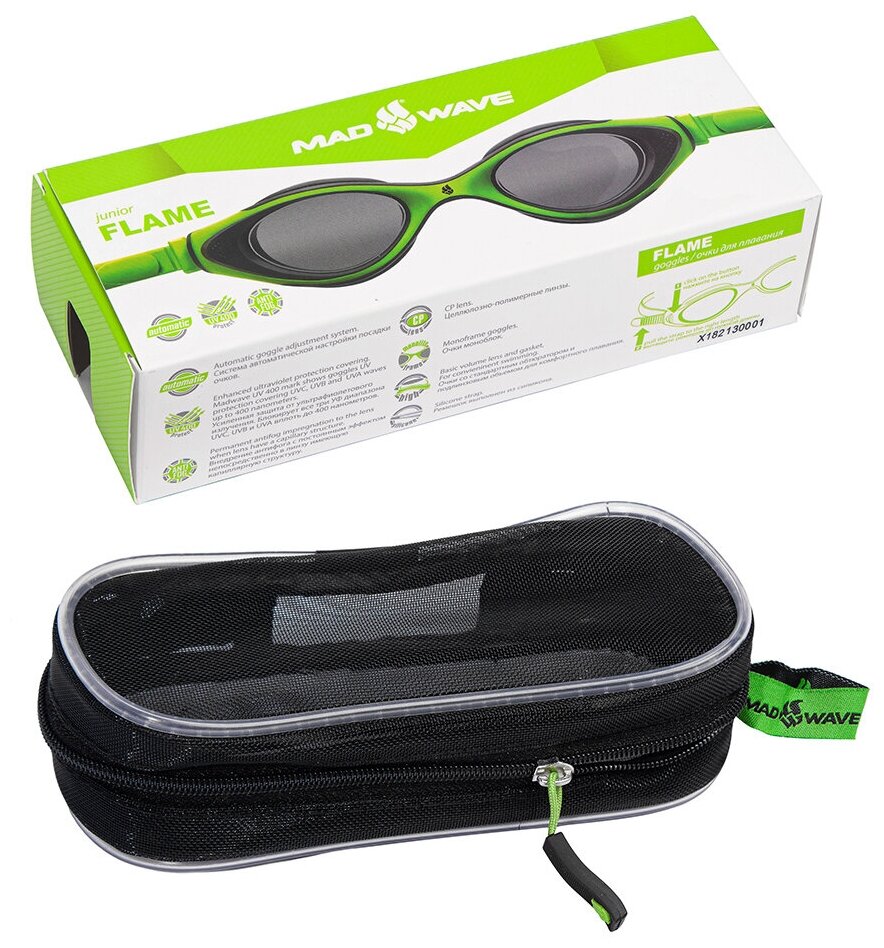 СохранитьОчки для плавания подростковые Mad Wave Automatic Junior Flame - Зеленый интересное: