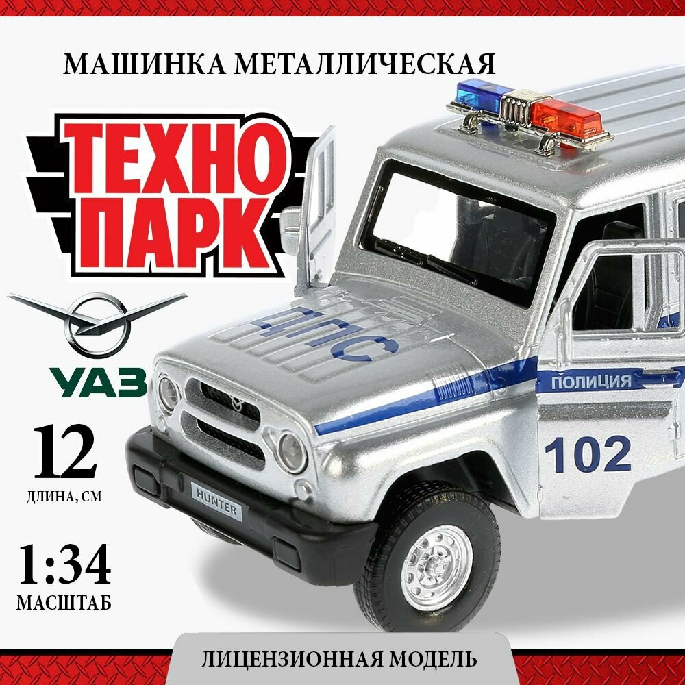 Машинки для мальчиков металлическая модель Технопарк УАЗ Хантер Полиция 12 см интересное: