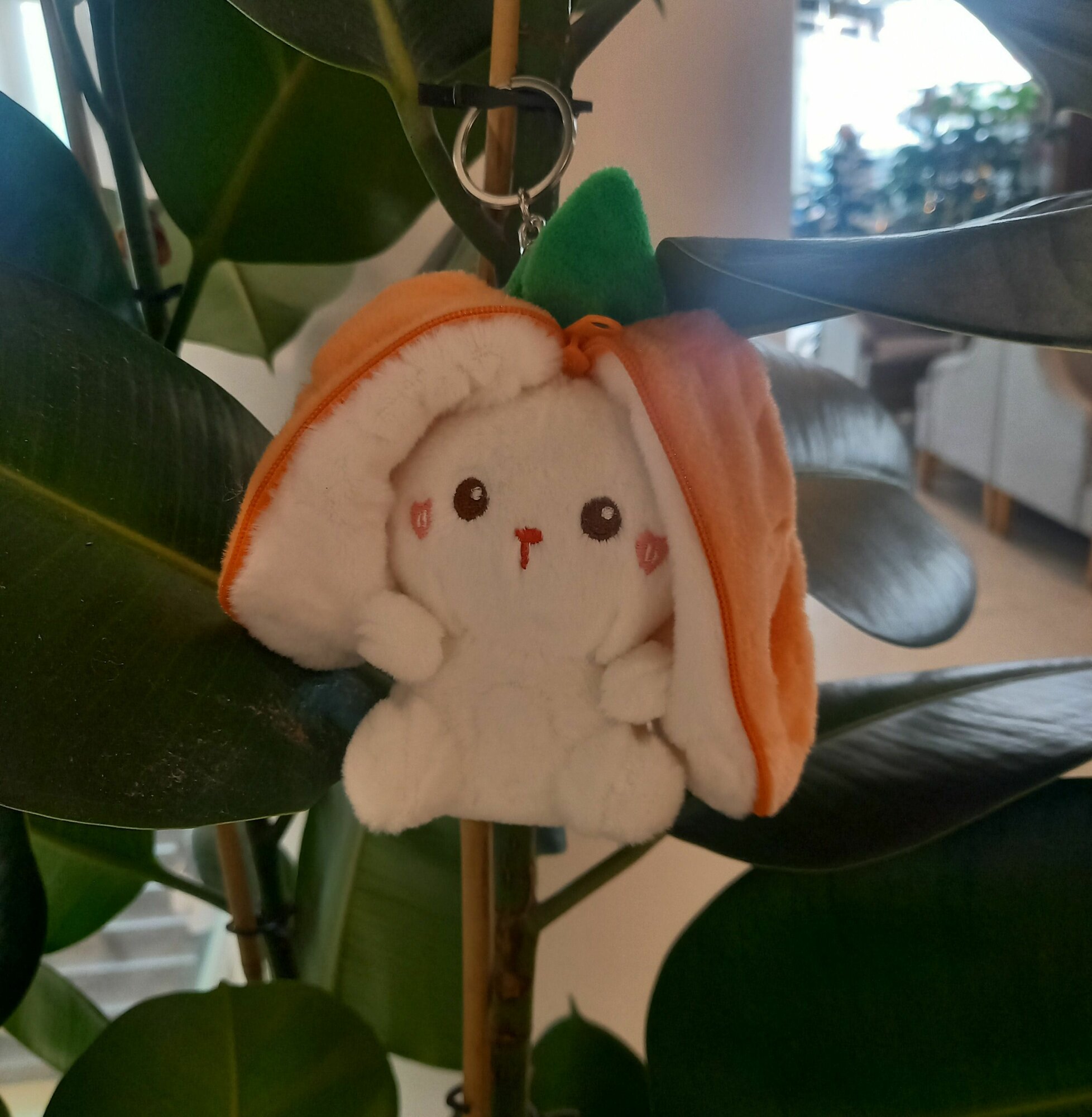 Купить Брелок Заяц Морковка перевертыш на молнии два в одном 13см