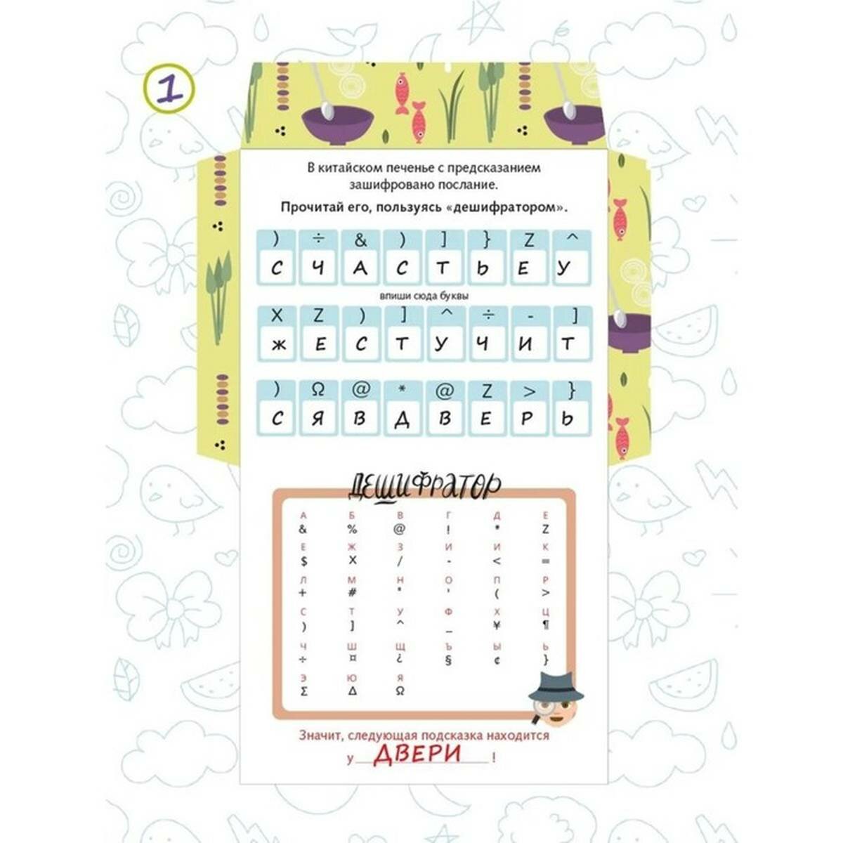 | Комплектация | пазл из 8 частей, вводная карточка, 8конвертиков с заданиями, наклейка для конвертиков и подсказок, инструкция |