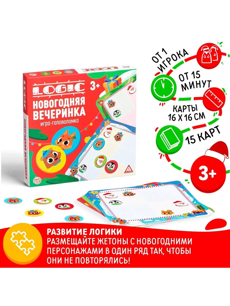 Купить Игра-головоломка "Logic. Новогодняя вечеринка", 15 карт, 3+