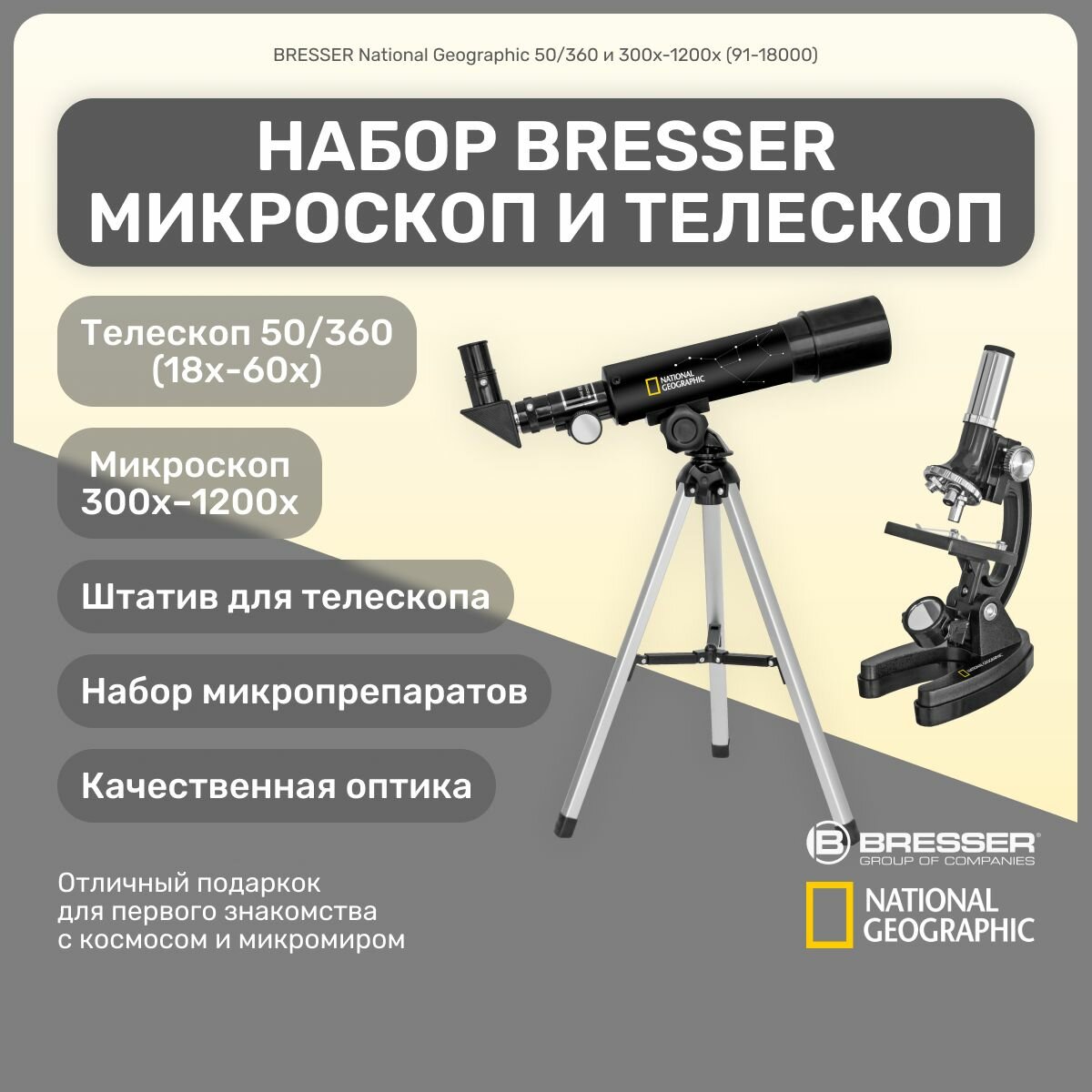 Набор микроскоп и телескоп BRESSER National Geographic 50/360 и 300x-1200x (91-18000) начального/любительского уровня, набор опытов и экспериментов любительский, для детей, для исследований интересное: