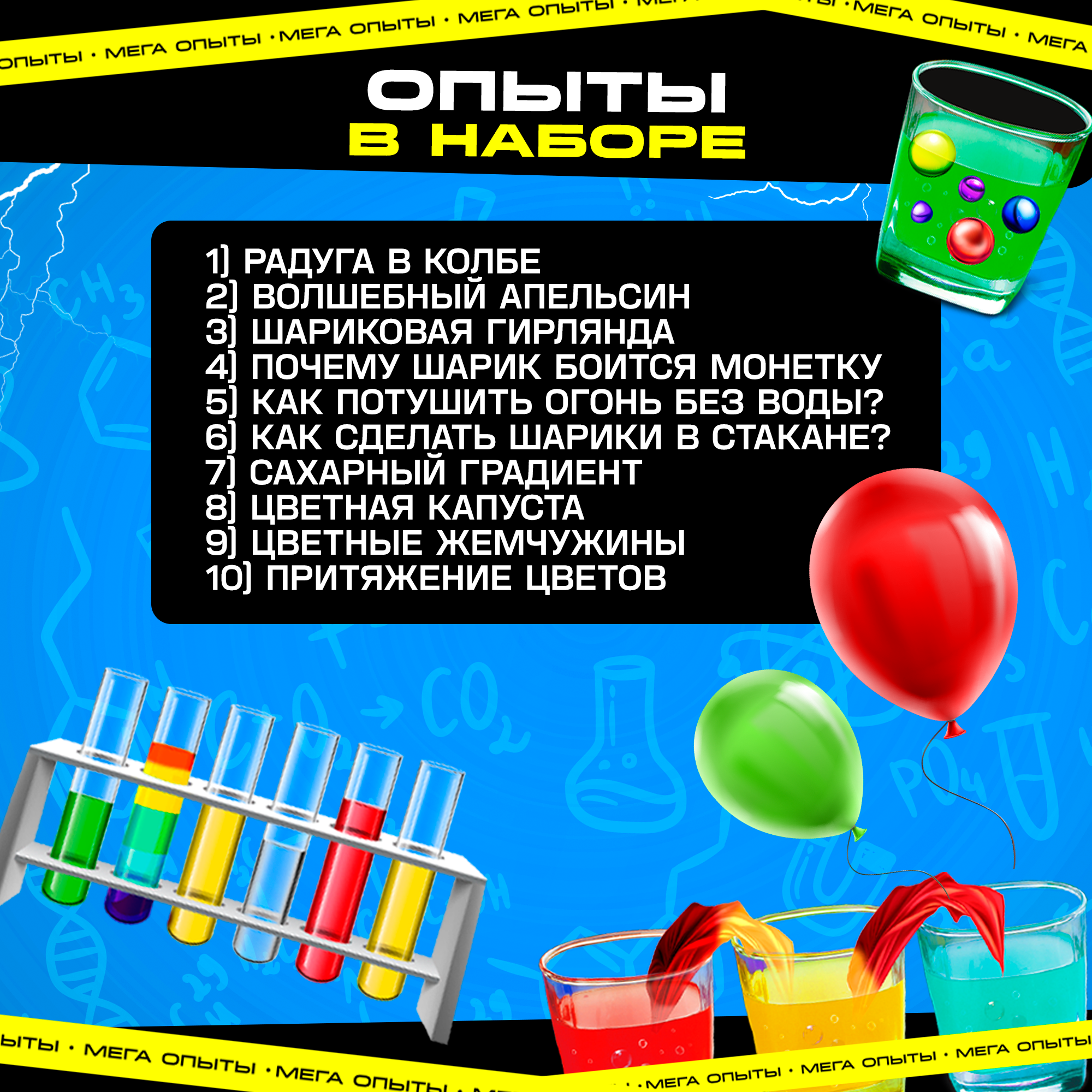 Набор для опытов «Увлекательная наука», 10 опытов с лабораторной посудой