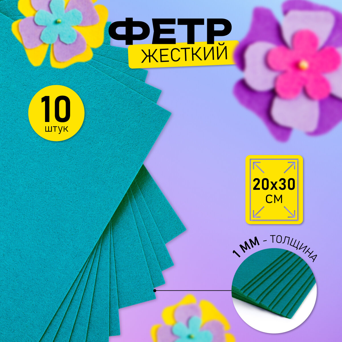 Купить Фетр листовой жесткий IDEAL 1мм 20х30см арт. FLT-H1 уп.10 листов цв.651 бирюза
