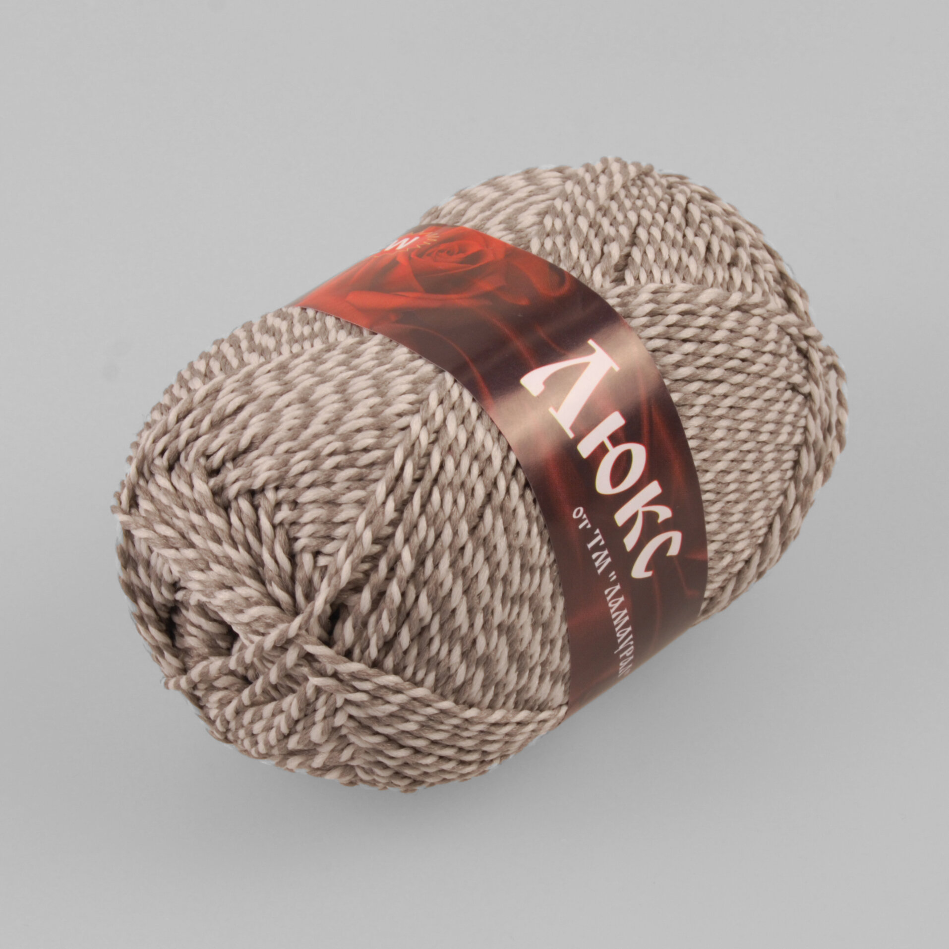 Пряжа Хозяюшка-рукодельница Люкс, 50 г/140м, дуэт №9 5+5 шт коричневый меланж/кремовый + крючок №3.5