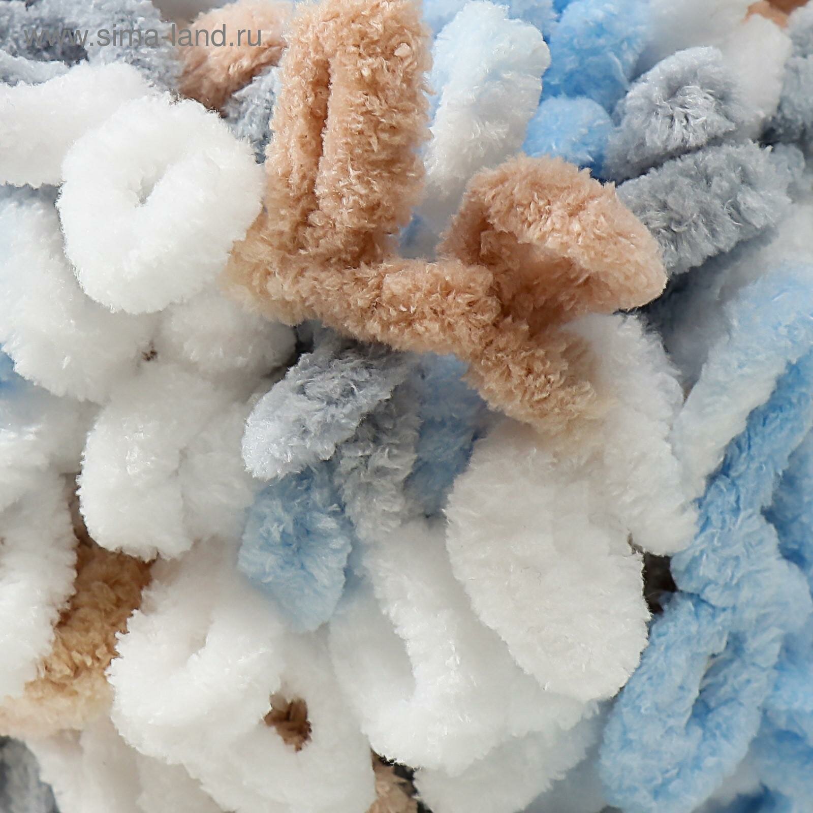 Пряжа Alize Puffy fine color белый-голубой-серый-бежевый (5946), 100%микрополиэстер, 14.5м, 100г, 1шт