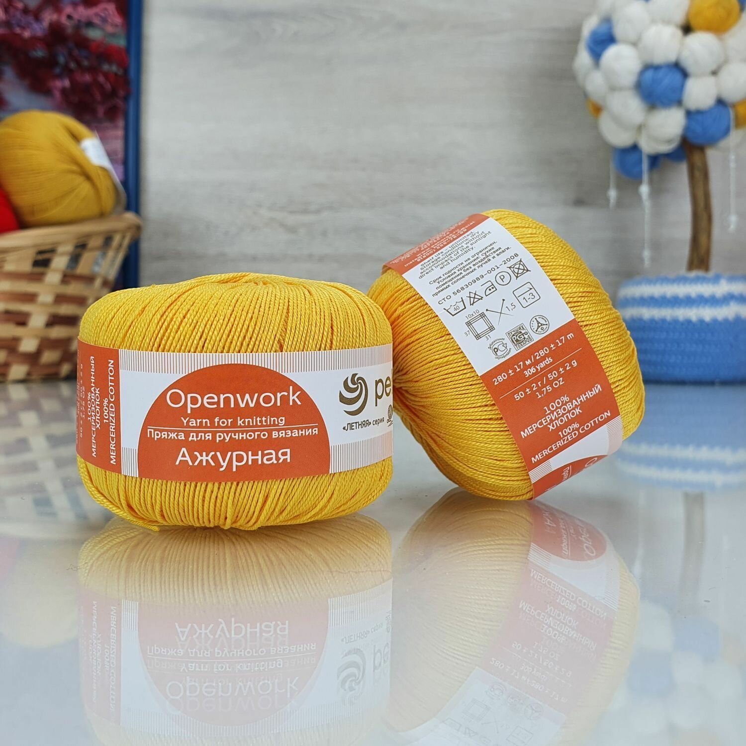 СохранитьПряжа Ажурная (Пехорка), Желток - 12, 100% мерсеризованный хлопок, 10 мотков, 50 г, 280 м. интересное:
