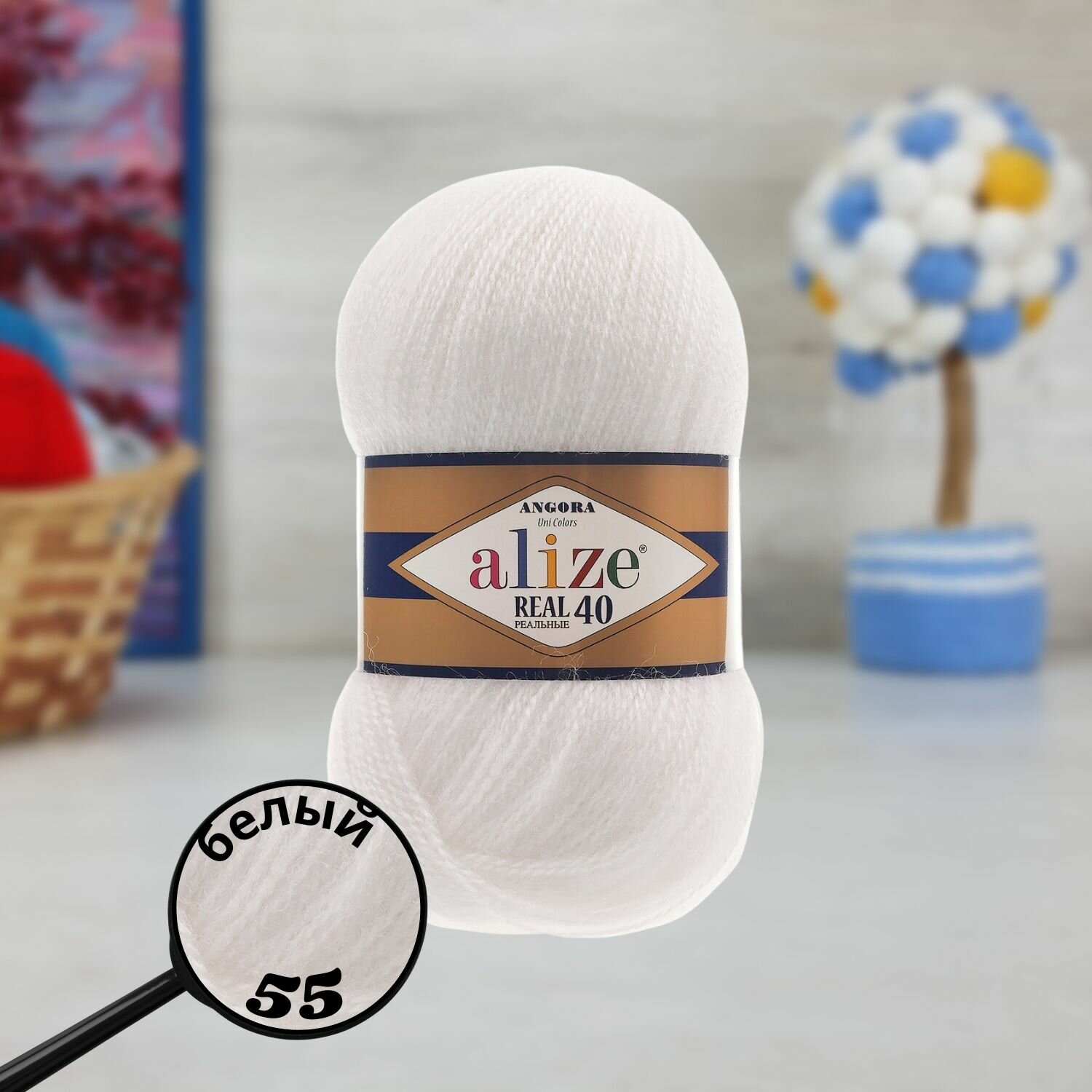 Купить Пряжа ALIZE ANGORA REAL 40, белый - 55, 40% шерсть, 60% акрил, 5 мотков, 100 г, 430 м.