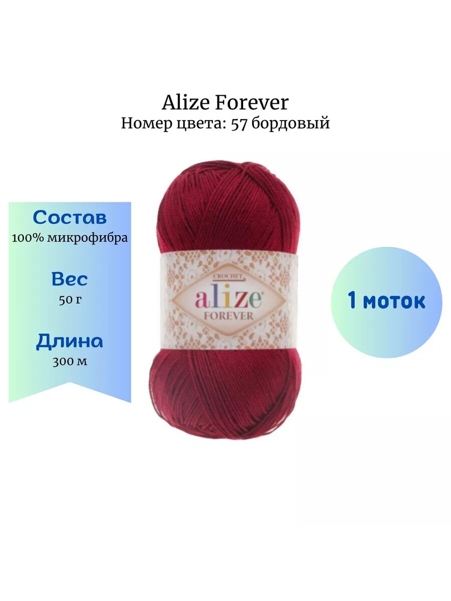 Ниже Вы можете прочитать отзывы на Пряжа Alize Forever 57 бордовый 1 моток, ознакомится с подробными характеристиками, посмотреть интересные обзоры и фотографии на Пряжа Alize Forever 57 бордовый 1 моток.