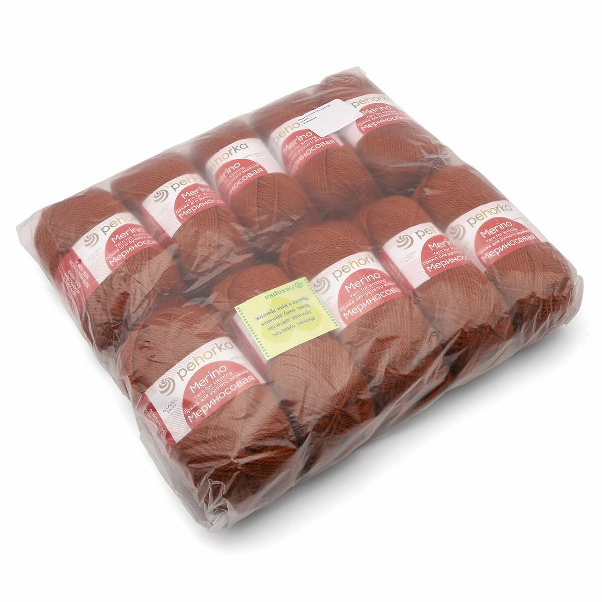 Пряжа для вязания Пехорка 'Мериносовая' 100г, 200м (50% шерсть, 50% акрил) (251 коричневый), 10 мотков