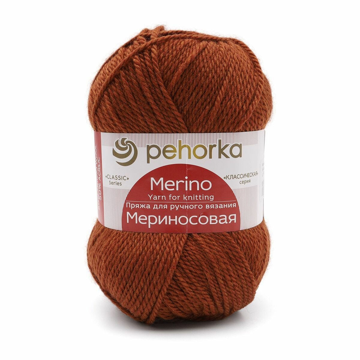 Пряжа Пехорка "Мериносовая" - 1 шт, цвет: 251-Коричневый, 200м/100г, 50% мериносовая шерсть, 50% акрил