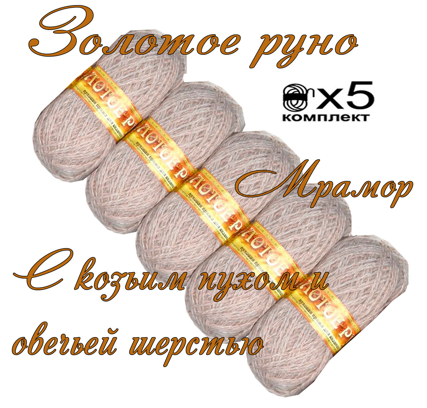 Пряжа с козьим пухом и овечьей шерстью (500 грамм/1250 метров) для вязания, состав: козий пух 40%, овечья шерсть 50%, акрил 10%. Набор 5шт.Мрамор