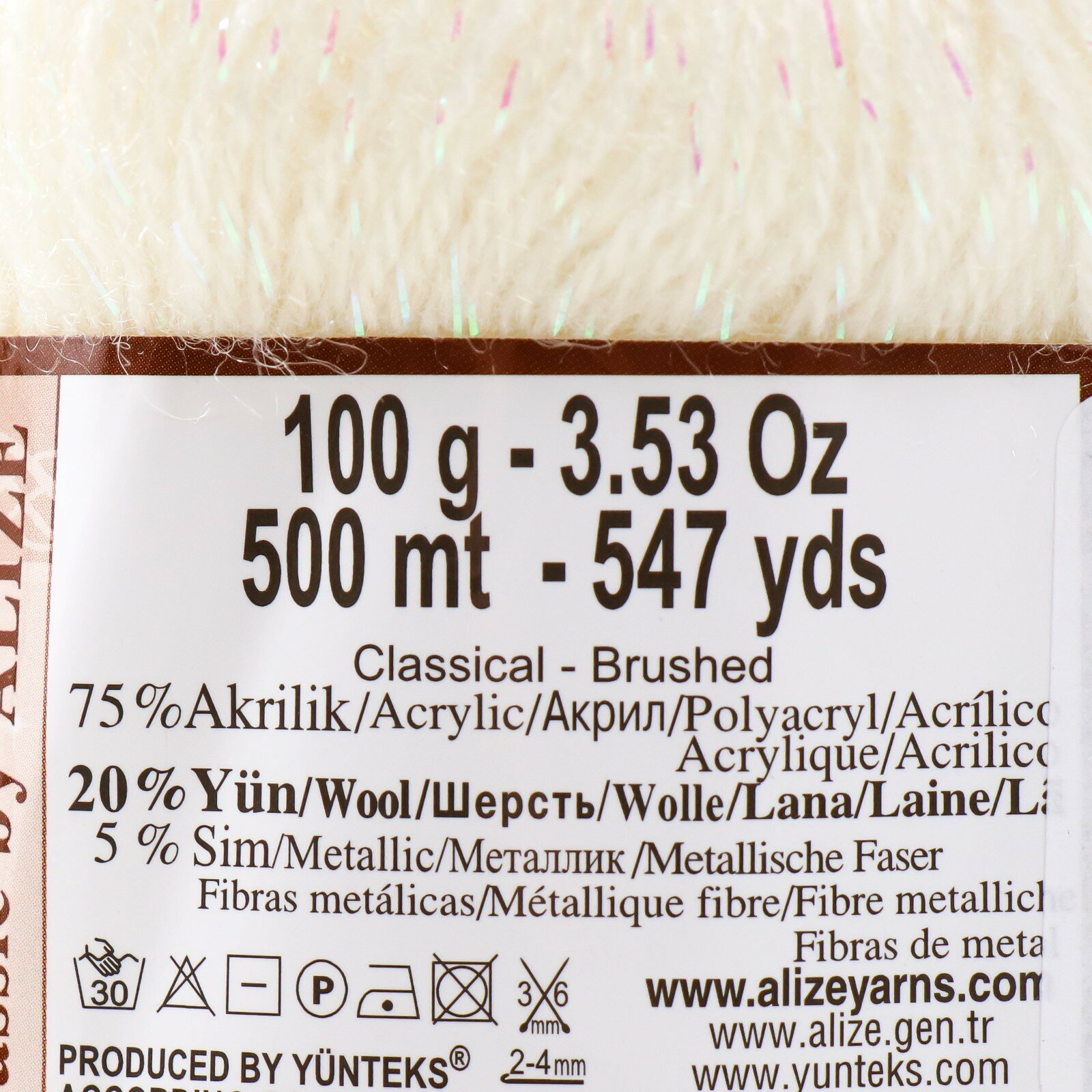 Пряжа для вязания Alize Angora Gold Simli, цвет 506 молочный бежевый, моток 100г, 500м, 5шт/упак