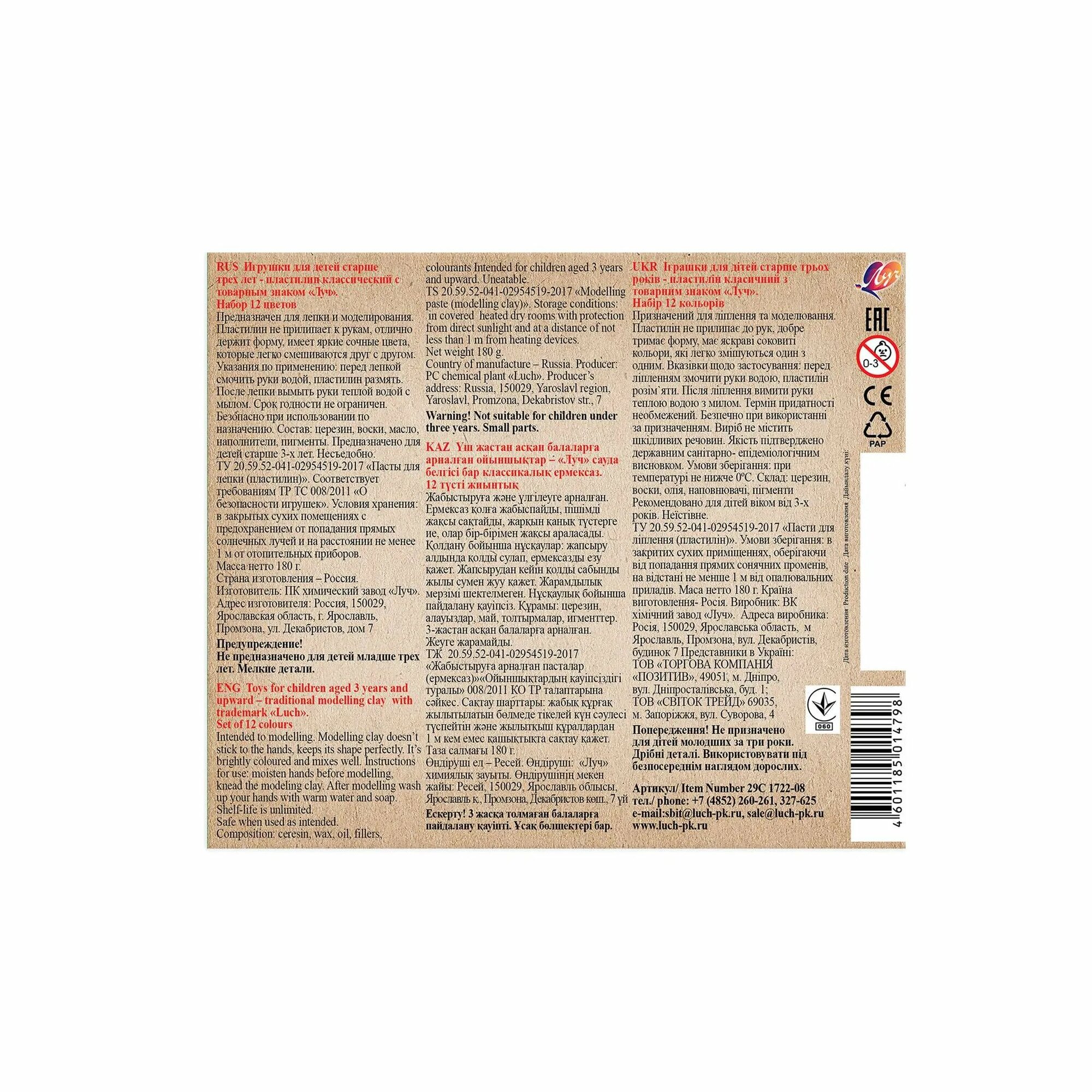 Пластилин Луч классический "Zoo", 12 цветов, 180 г, картонная коробка (29C 1722-08)