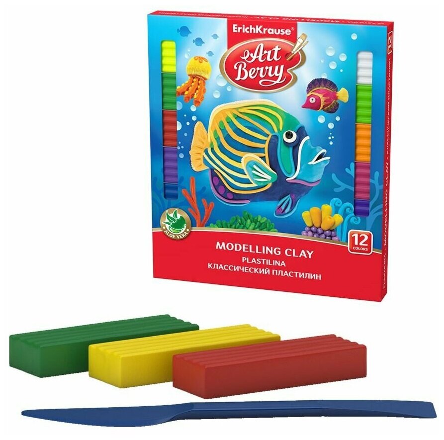 Пластилин 240г классический Erich Krause ArtBerry с алоэ вера 12цв со стеком 41763 интересное: