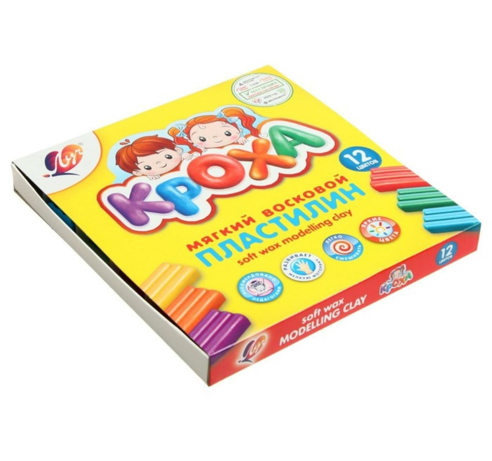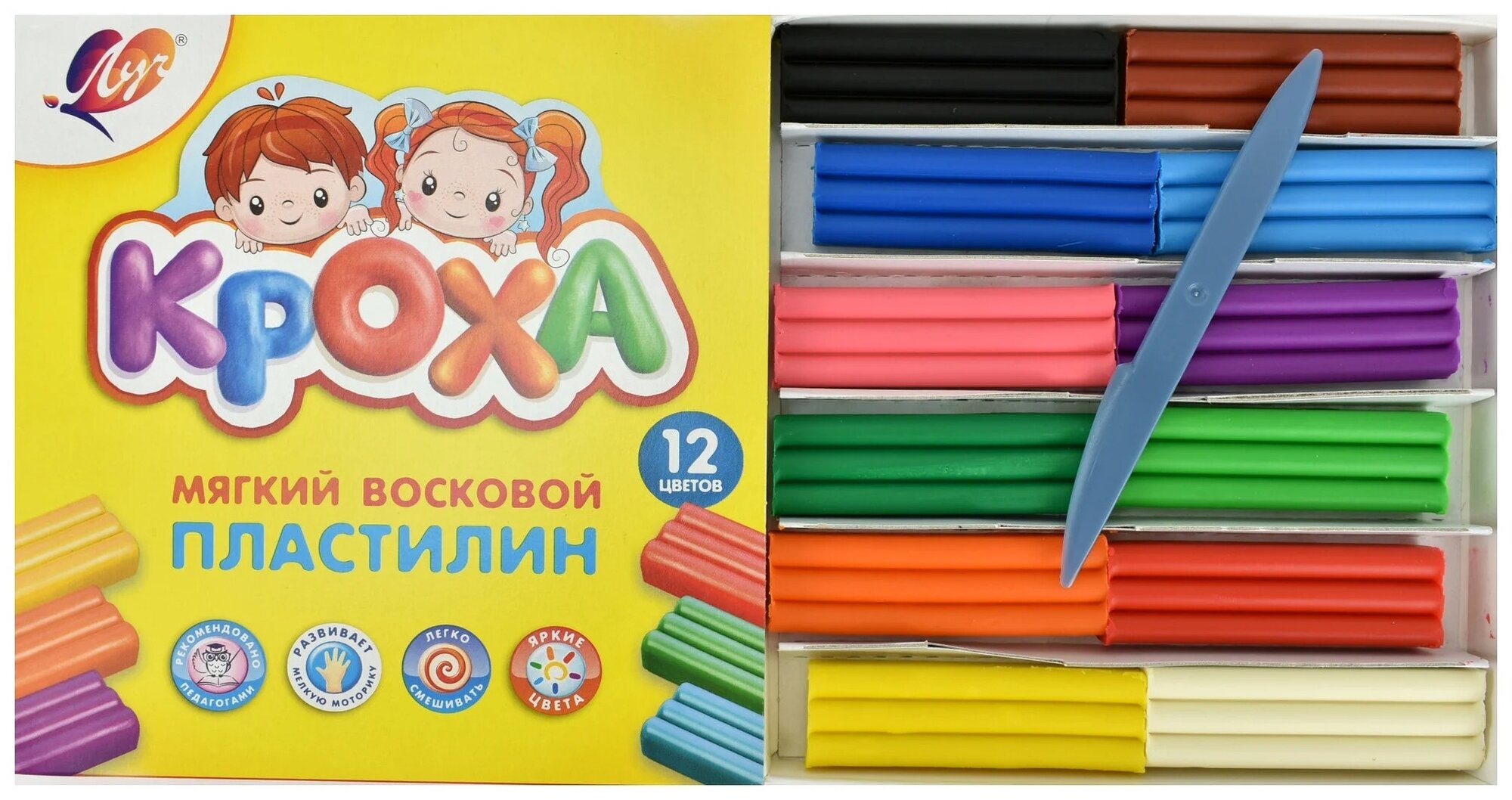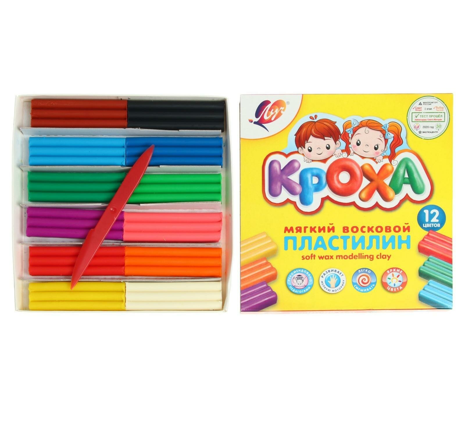 Пластилин мягкий (восковой), 12 цветов, 180 г, "Кроха", со стеком интересное: