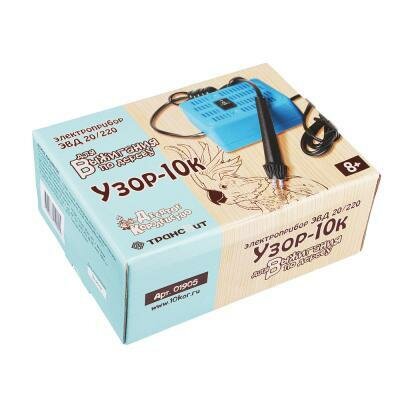 Электроприбор для выжигания по дереву и ткани "Узор-10к", набор для детского творчества, аппарат-выжигатель + сменная игла для выжигания по ткани