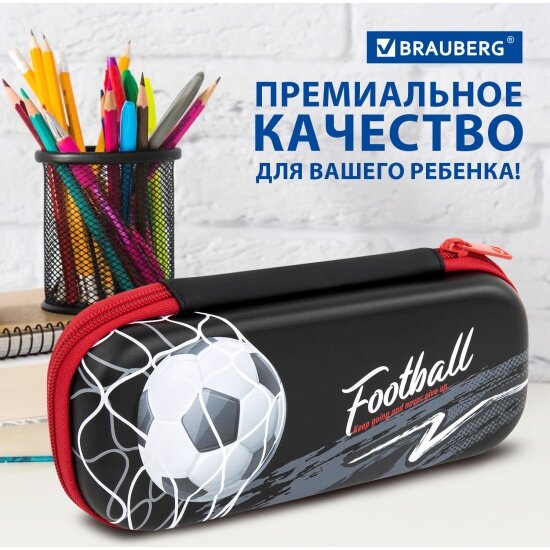 Пенал школьный для мальчика / подростка для ручек, карандашей Brauberg, 1 отделение, 1 откидная планка, Eva 3D, 22х10х5 см, Goal, 270701
