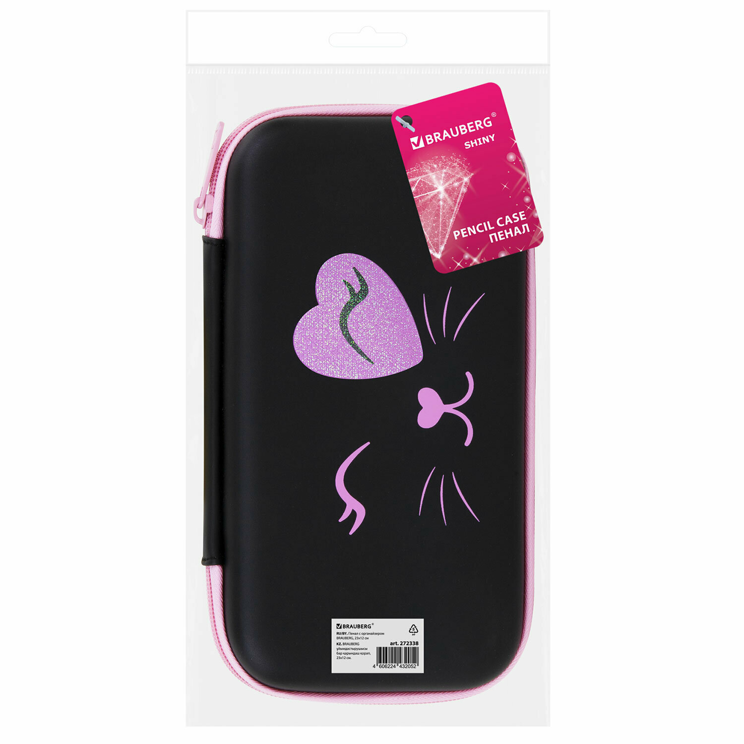 Пенал Brauberg Shiny, 1 отделение, 1 откидная планка, Eva, 23х12 см, Smiling cat, 272338