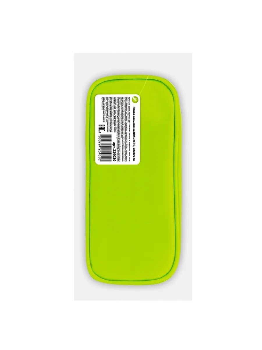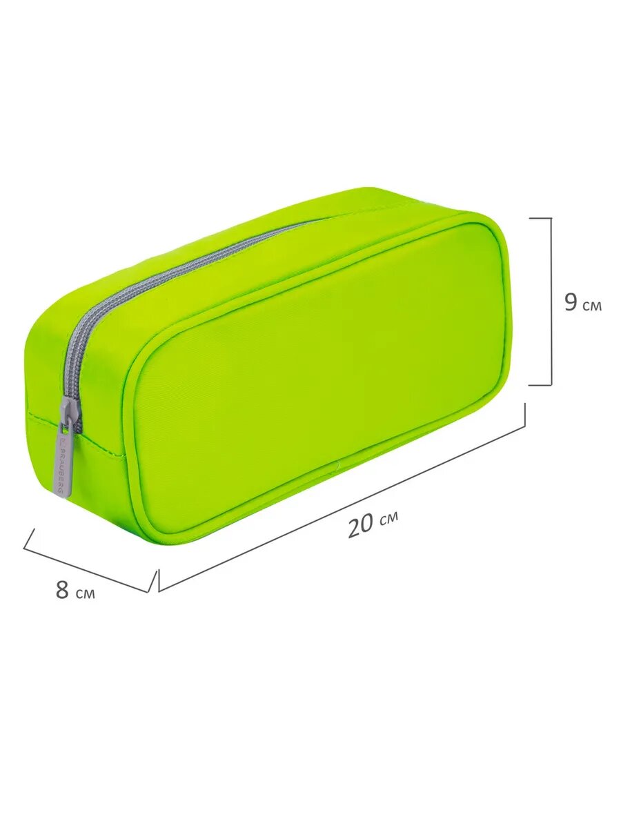 Пенал-косметичка BRAUBERG, мягкий, "KING SIZE NEON GREEN", 20х8х9 см, 229020 (цена за 1 ед. товара)
