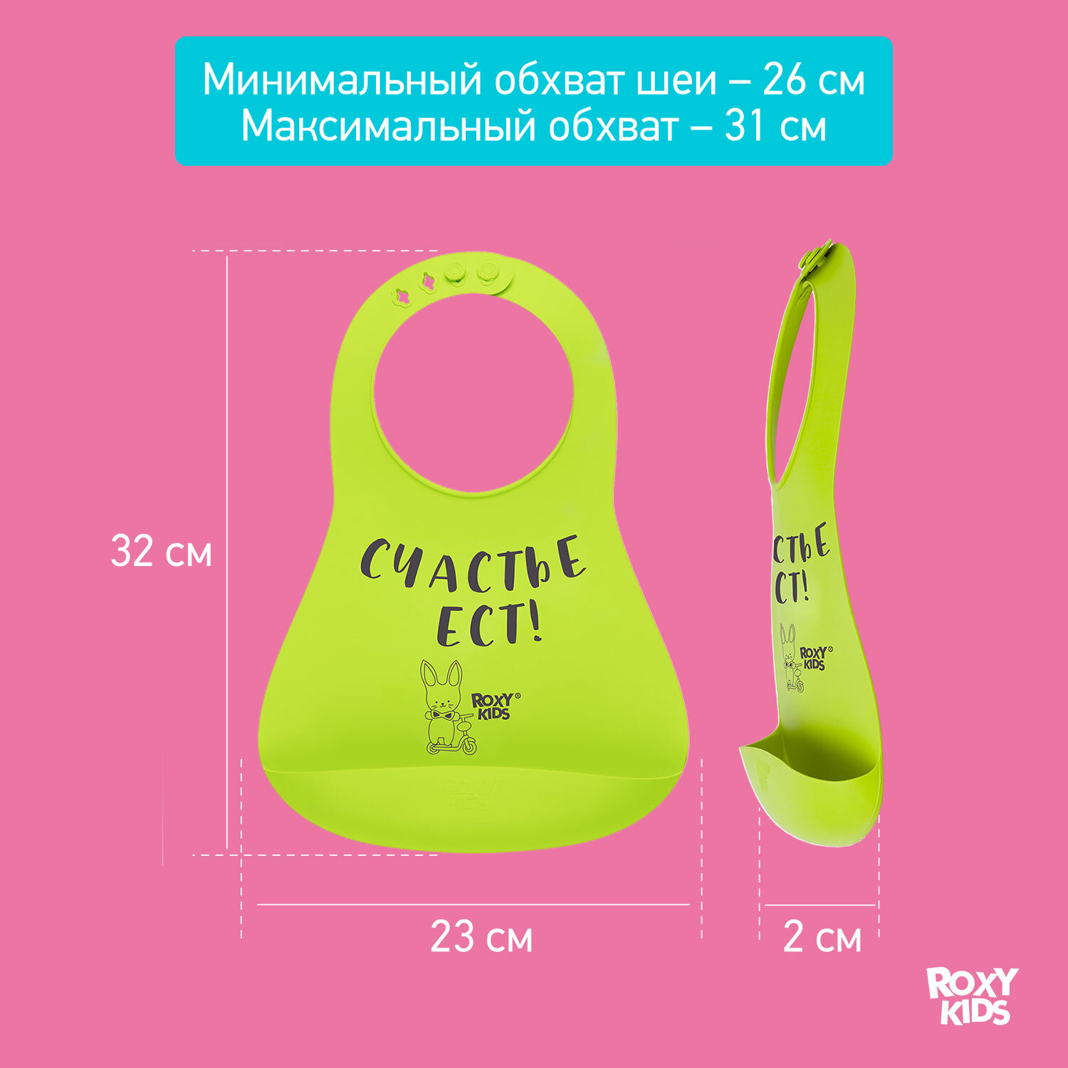 Купить Нагрудник для кормления ROXY-KIDS, слюнявчик пластиковый с кармашком, зеленый