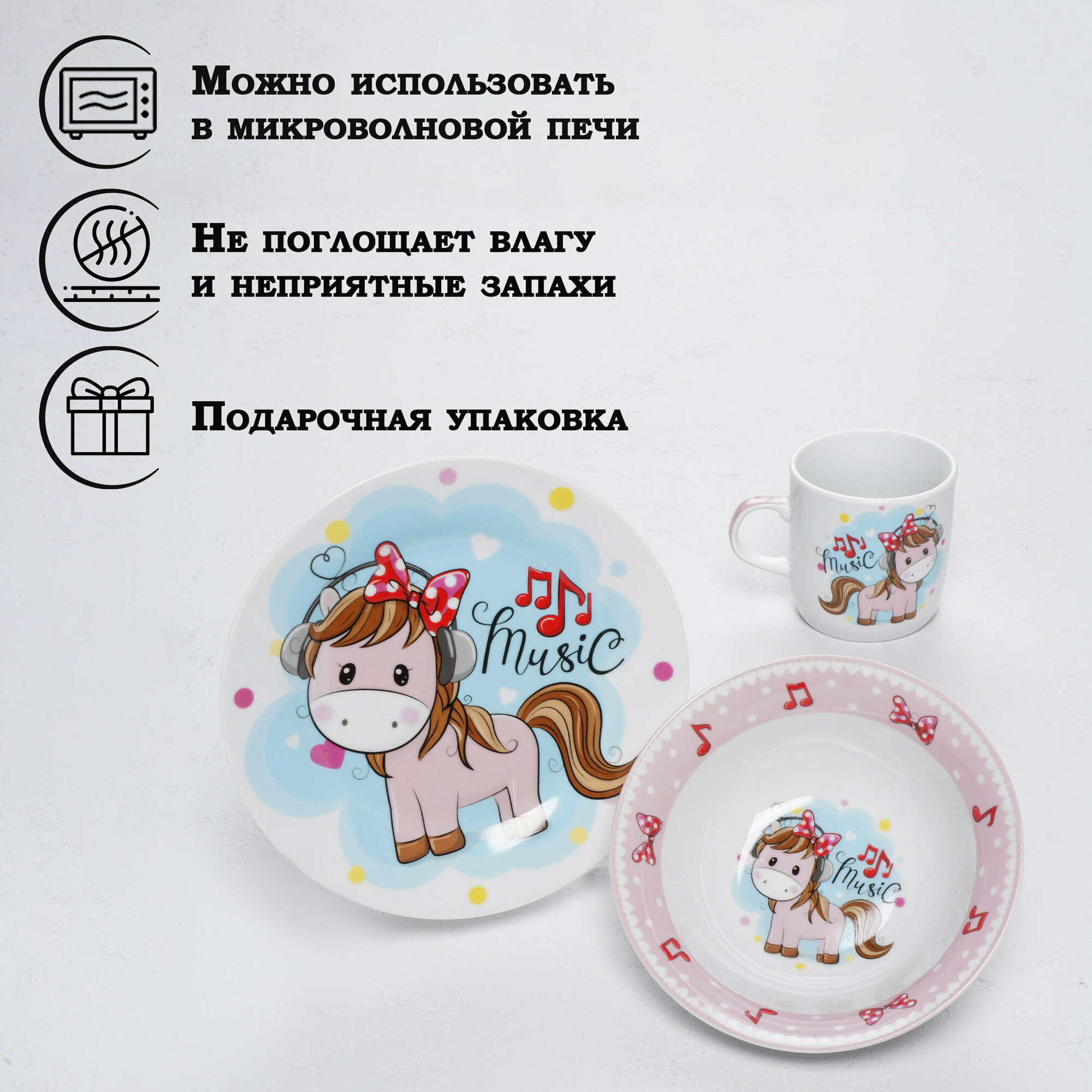 Набор детской посуды Доляна «Маленькая лошадка», 3 предмета: кружка 230 мл, миска 400 мл, тарелка d=18 см