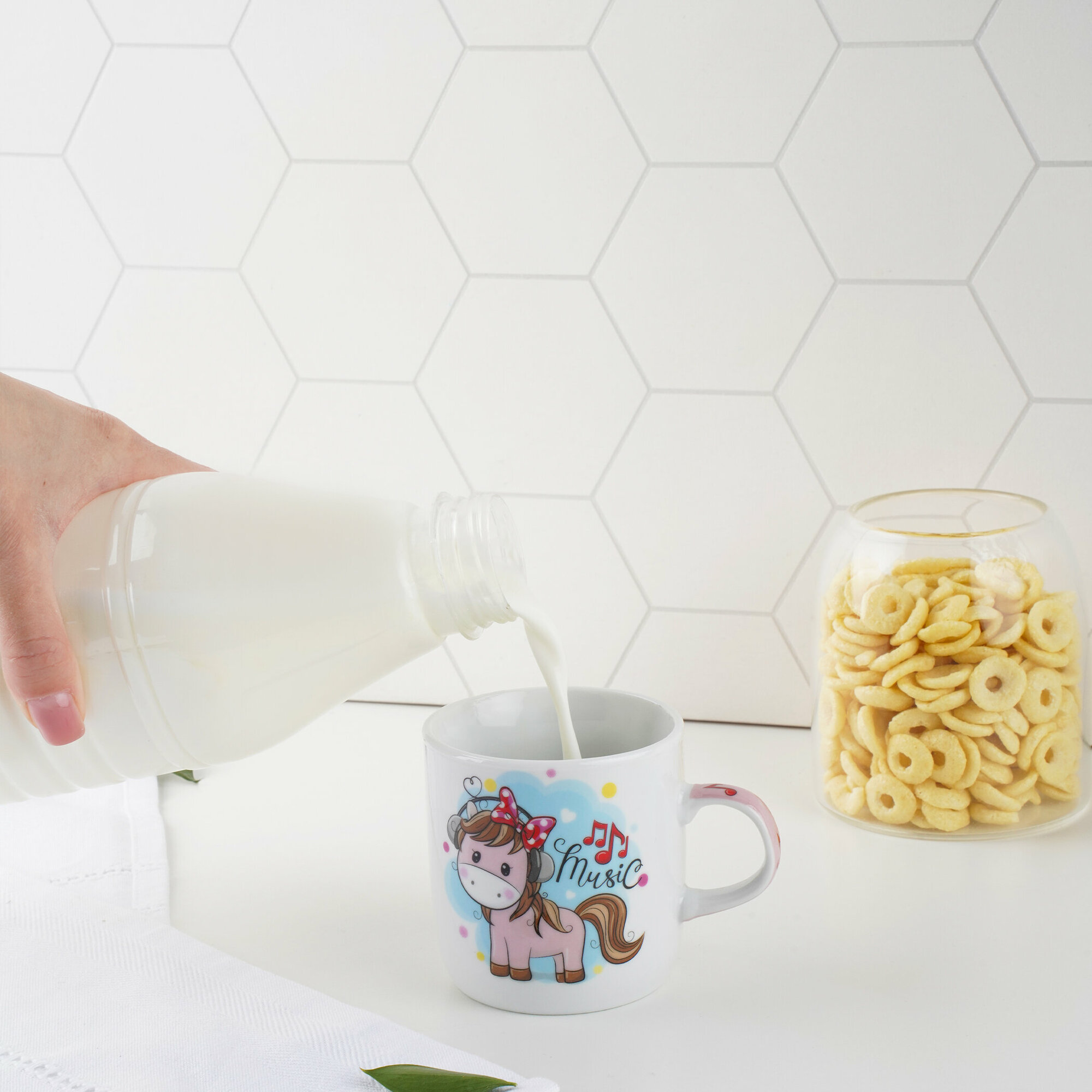 Набор детской посуды из керамики Доляна «Маленькая лошадка», 3 предмета: кружка 230 мл, миска 400 мл, тарелка d=18 см, цвет белый