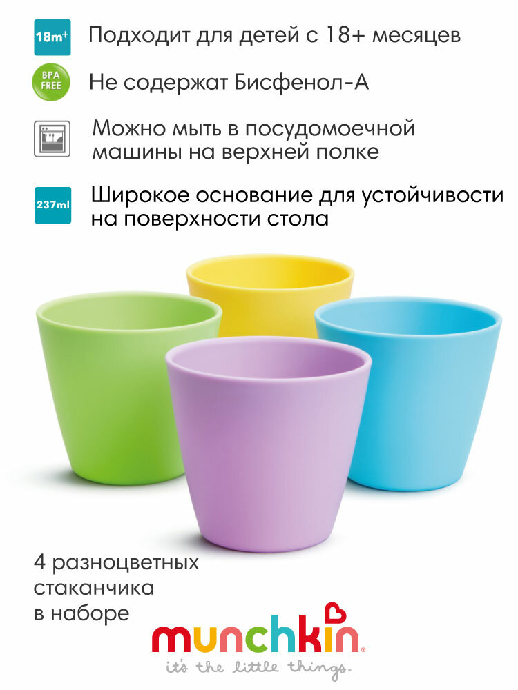 Купить Набор стаканчиков Munchkin "Multi", с 1,5 лет, 237мл, разноцветных, 4шт