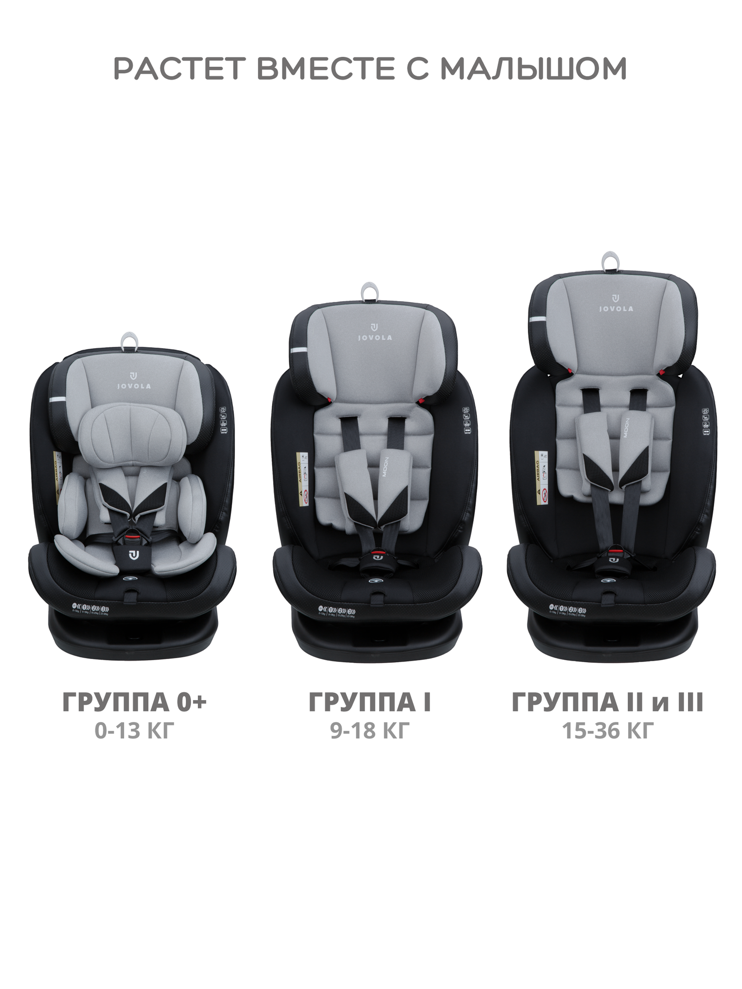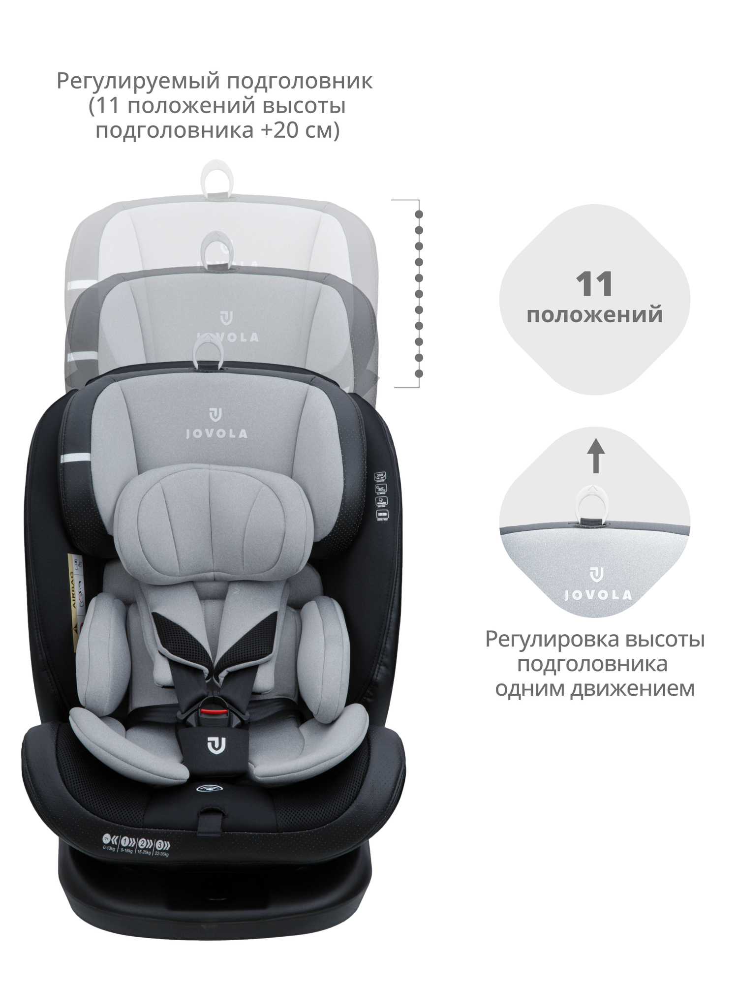 Автокресло JOVOLA Moon ISOFIX, группа 0+1+2+3, 0-36 кг, до 12 лет, черный - светло-серый