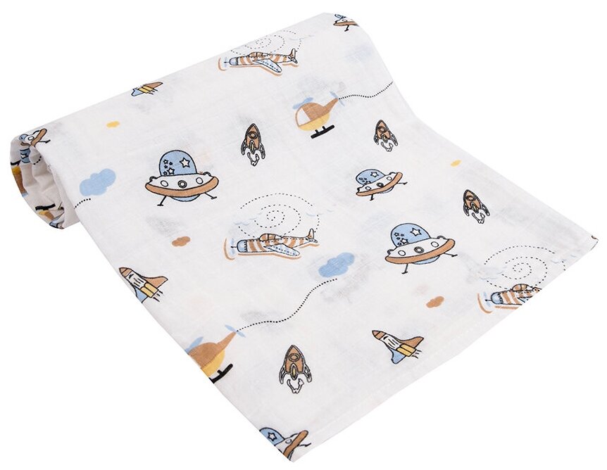 Пеленка муслиновая, 120х120, "Ракета и самолет"