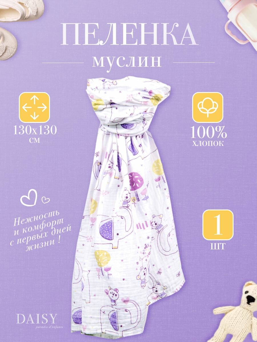 Муслиновая пеленка 130х130см Слон и Мишка интересное: