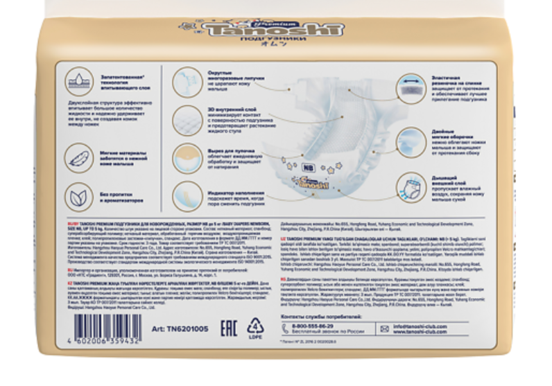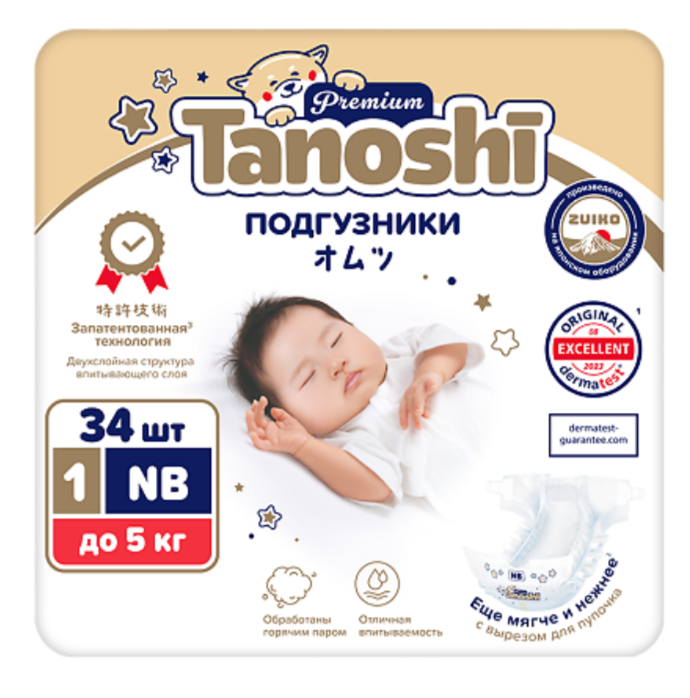 Подгузники для новорожденных Tanoshi Premium, размер NB до 5 кг, 34 шт интересное: