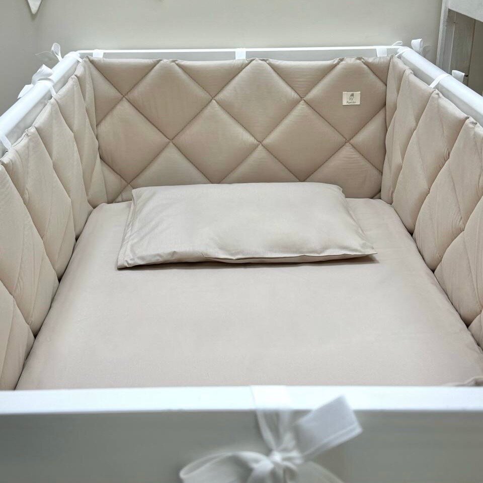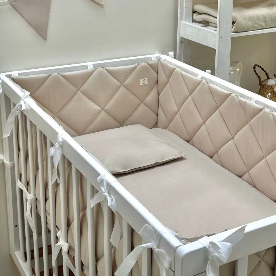 Бортики в кроватку для новорождённых, светло бежевый, 100% хлопок, 60х30 см - 2 шт, 120х30 см - 2 шт, MamiBro