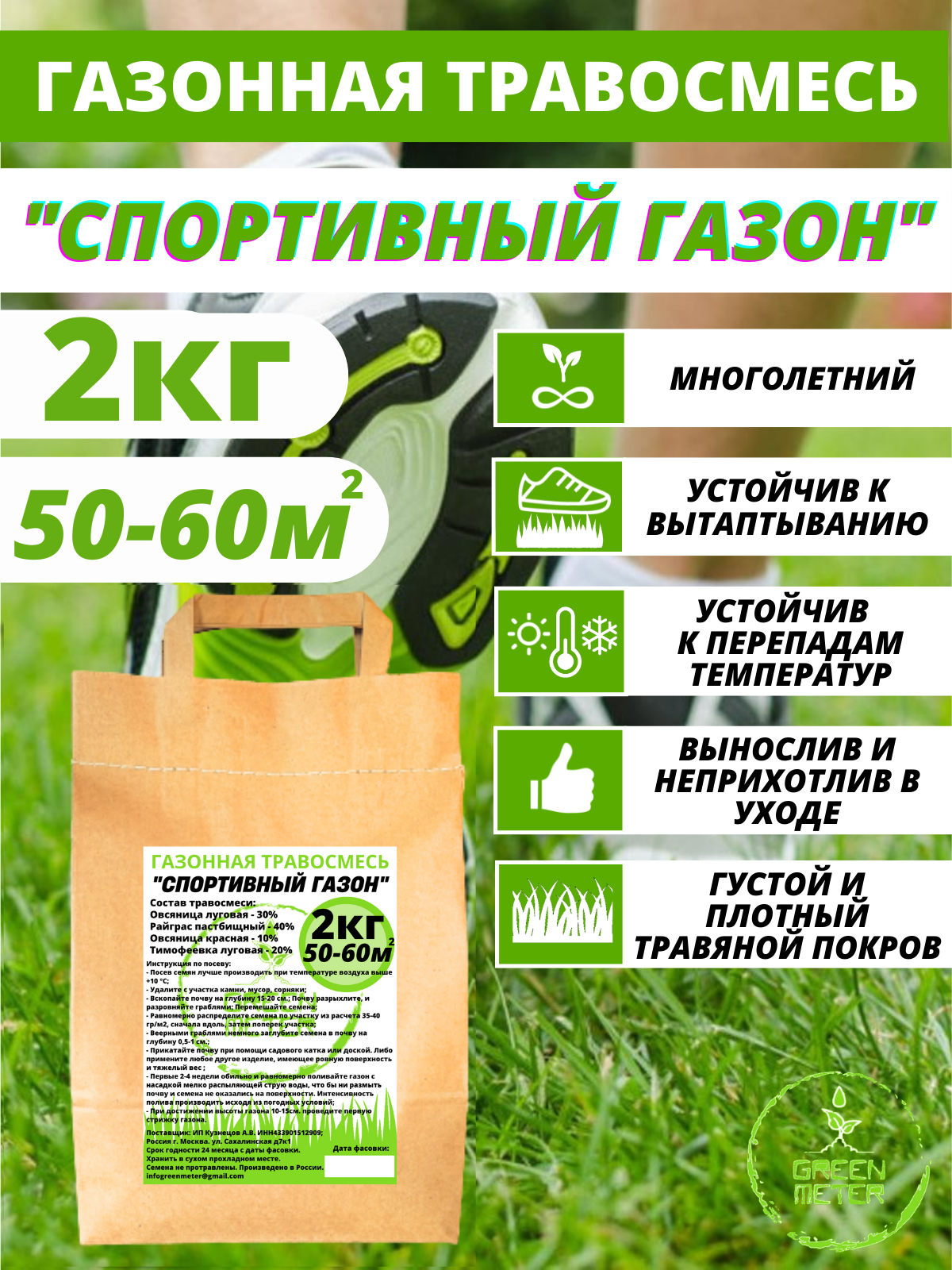| Дополнительная информация | Инструкция посадки газона находится на этикетке продукции |
