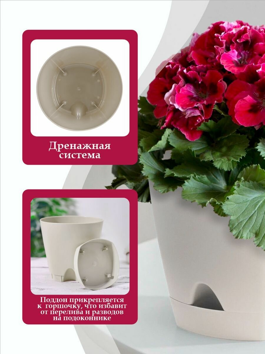 Горшок для цветов AMSTERDAM D 140мм с прикорневым поливом 1,35 л Сливочный