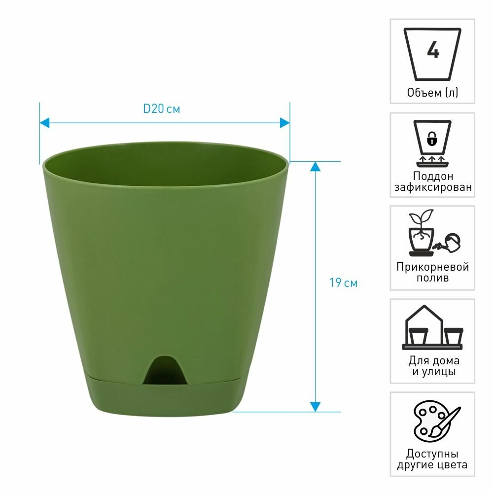 Купить Горшок для цветов 4 л AMSTERDAM D 200 mm/4l с прикорневым поливом оливковый