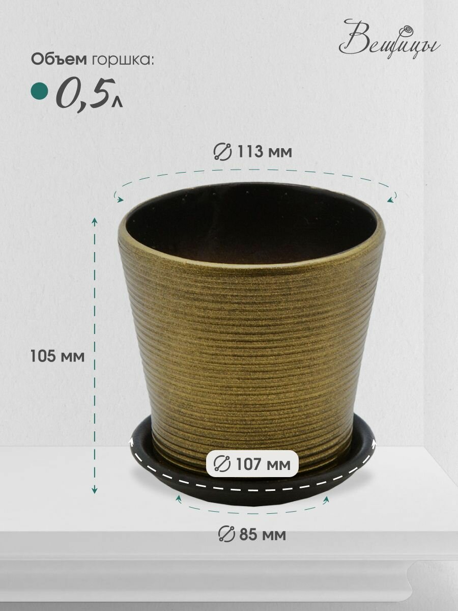 СохранитьКерамический горшок цветочный ВеЩицы с подставкой блюдцем / объем 0,5 л, цвет бронзовый глянцевый интересное: