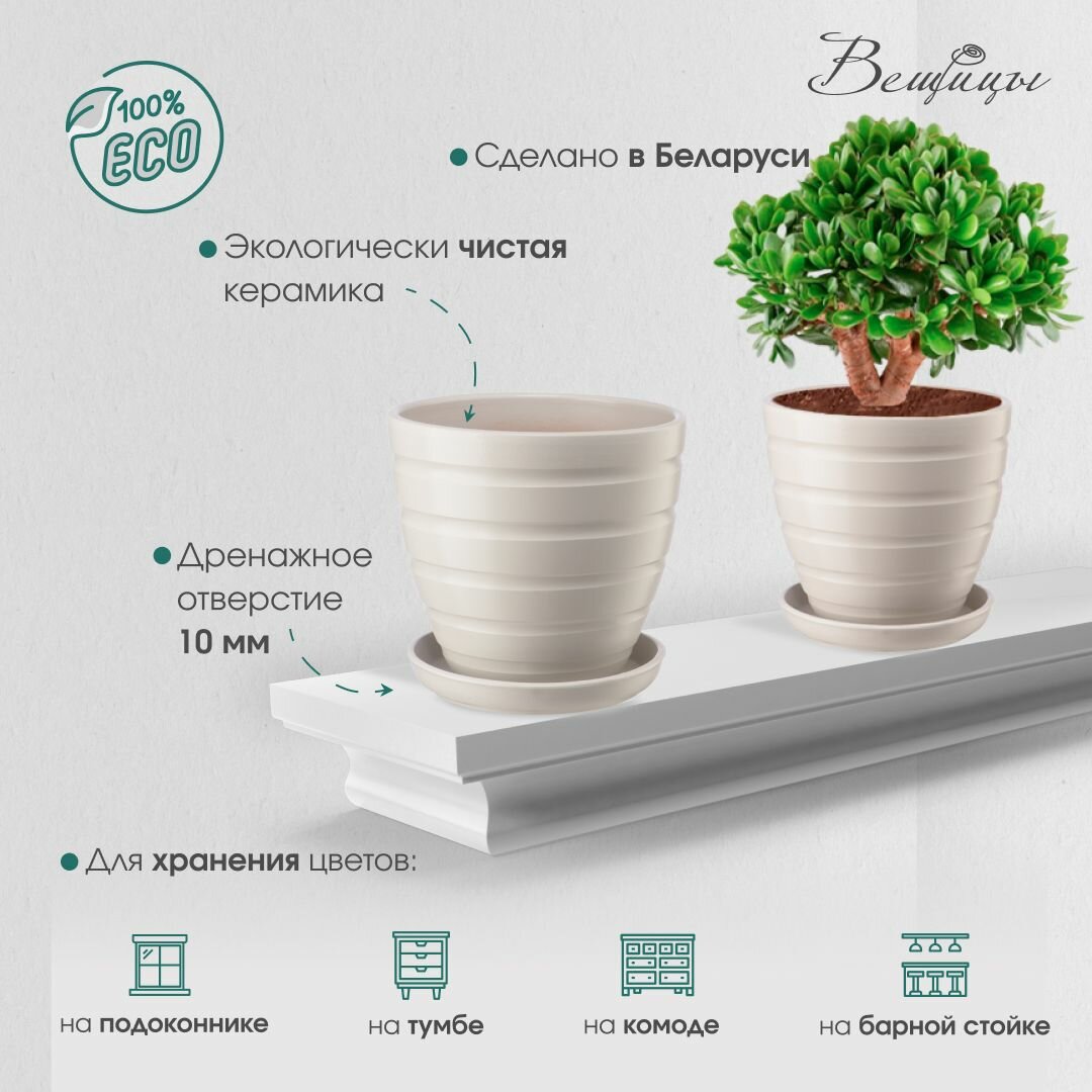 Керамический горшок цветочный ВеЩицы с подставкой блюдцем / объем 4,7 л, цвет капучино