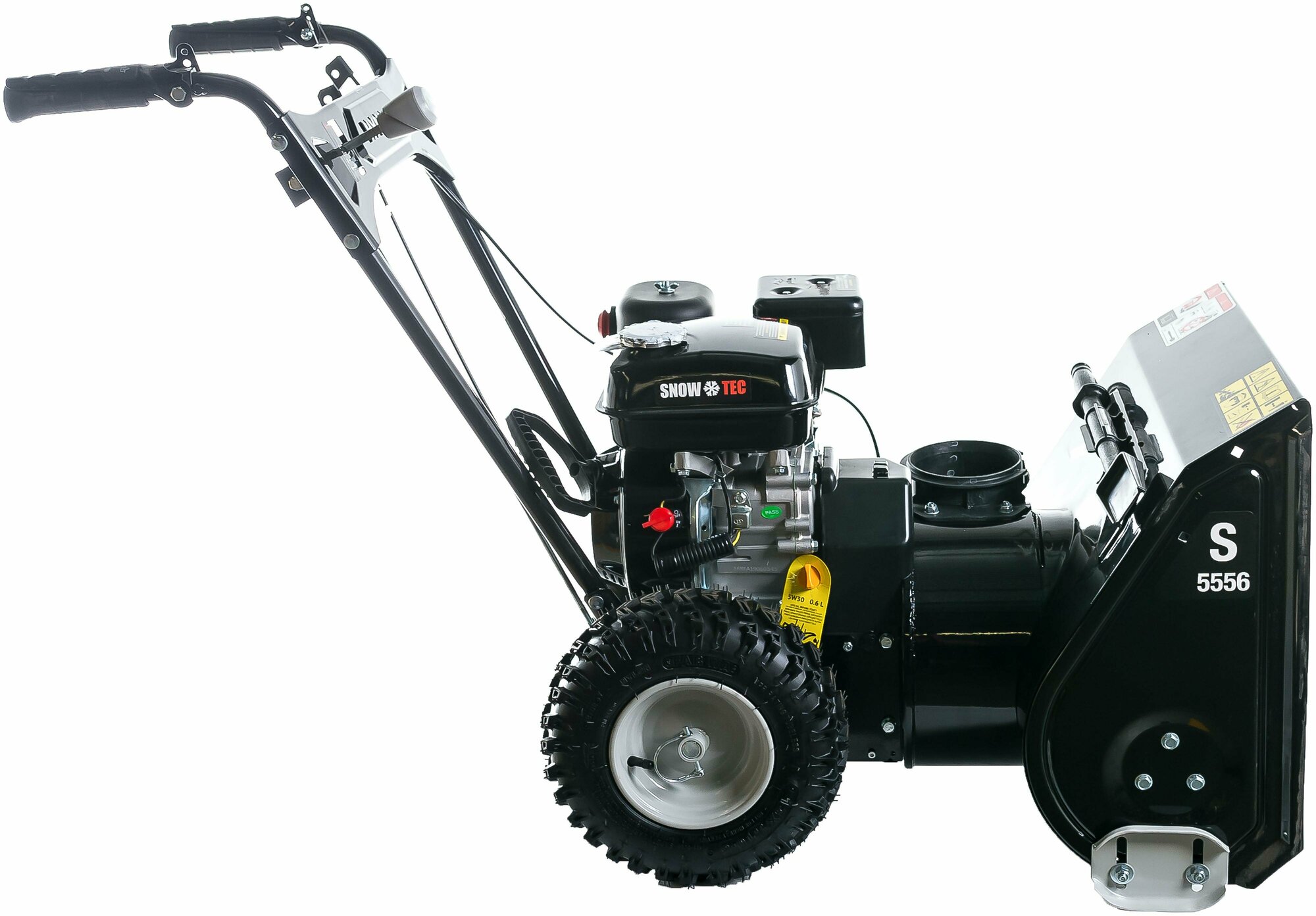 Бензиновый снегоуборщик Hyundai S 5556, выброс снега 11 м, емкость бака 3.6 л, мощность двигателя 5.6. л. с, ширина захвата 53 см