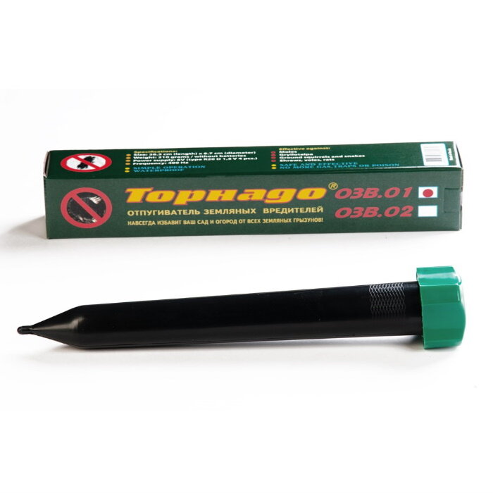 Отпугиватель кротов "Торнадо ОЗВ 01" на территорию до 1000 кв.м. влагозащищенный корпус на батарейках