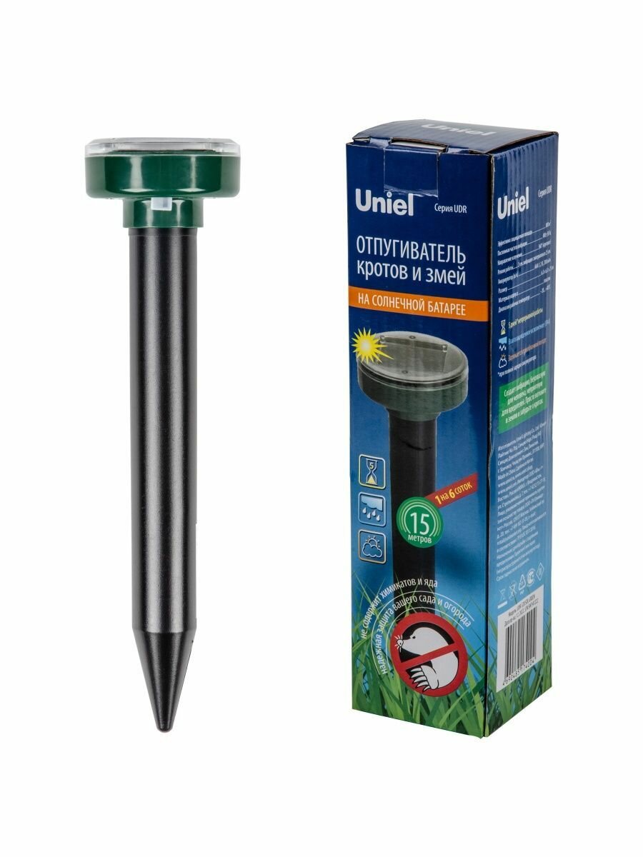 UDR-S20 SOL GREEN Устройство для отпугивания кротов и змей. на солнечной батарее. Постоянная частота вибрации. Аккумулятор в-к. IP44. Зеленый. TM Uniel