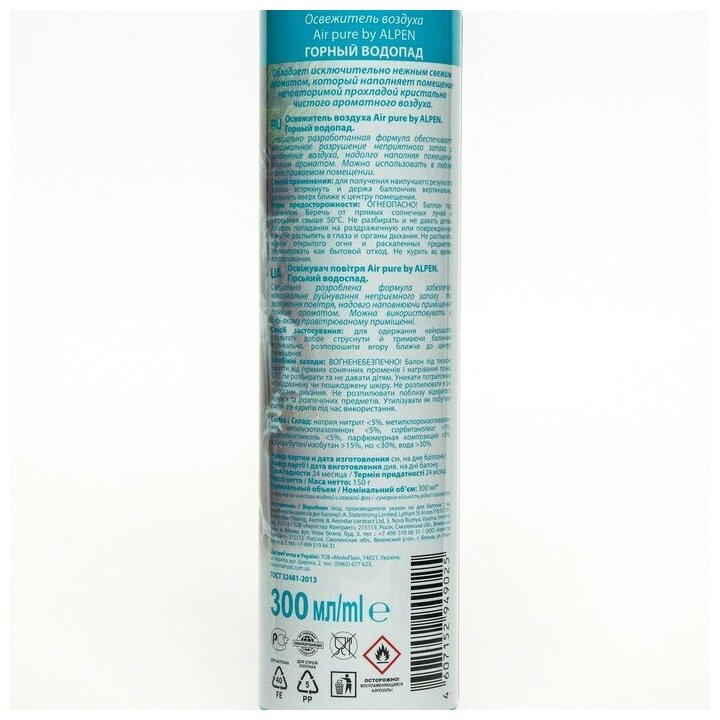 Освежитель воздуха Горный водопад свежесть, 300мл, 1шт ALPEN - 1 шт.