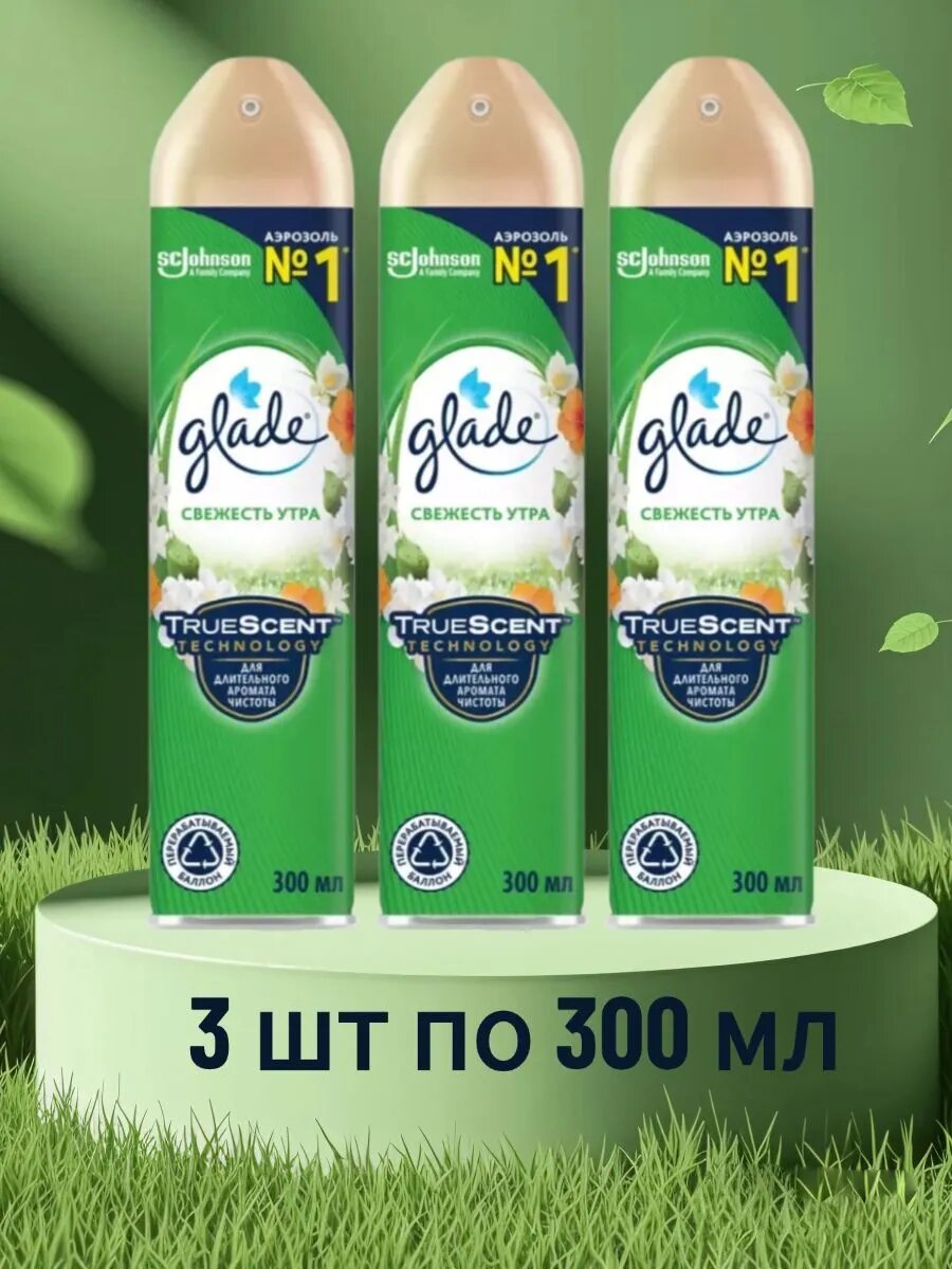 Набор 3 шт! Освежитель воздуха аэрозольный 300 мл, GLADE "Свежесть утра"