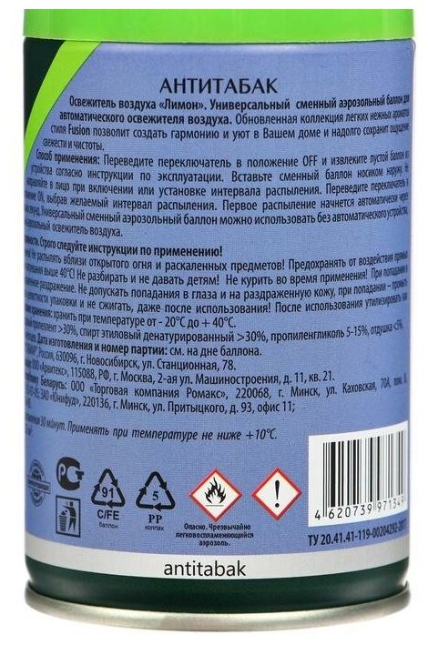 Master FRESH сменный баллон Fusion Антитабак, 250 мл интересное: