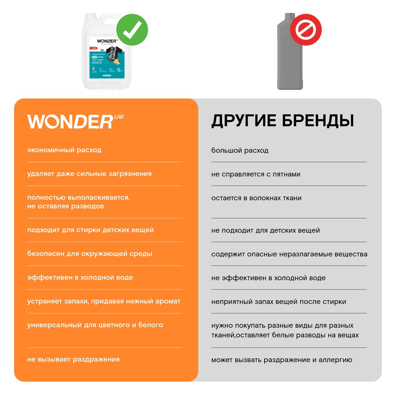 Купить Эко гель для стирки WONDER LAB Professional универсальный, концентрат, 200 стирок, 5 л